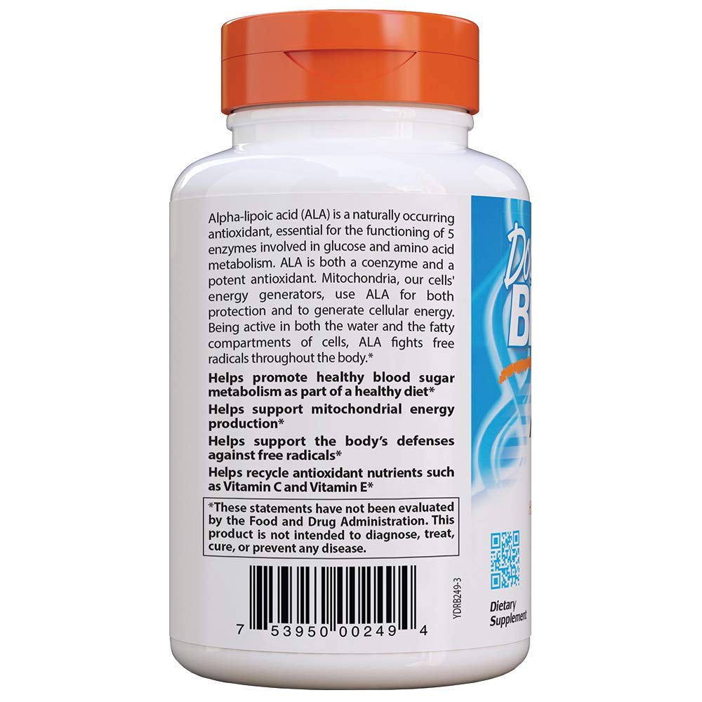 Doctor's Best, Alpha-Lipoic Acid, 600 mg, 60 Veggie Caps - iHerb.com Helps support glucose metabolism for cellular energy. · Helps regenerate antioxidants such as vitamin C, vitamin E and glutathione. · Helps support the body to ... Doctor's Best Alpha Lipoic Acid - 600 mg - 180 Veggie Capsules Buy Doctor's Best Alpha Lipoic Acid - 600 mg - 180 Veggie Capsules at the lowest price from eVitamins. Find Alpha Lipoic Acid reviews, side effects, coupons and more from eVitamins. Fast Shipping to United States Doctor's Best Alpha-Lipoic Acid, 600 mg, 60 Veggie Caps Doctor's Best Alpha-Lipoic Acid, 600 mg, 60 Veggie Caps. $14.99. Helps support glucose metabolism for cellular energy*. Helps regenerate antioxidants such as vitamin C, vitamin E and glutathione*. Helps support the body to buffer free radicals*.