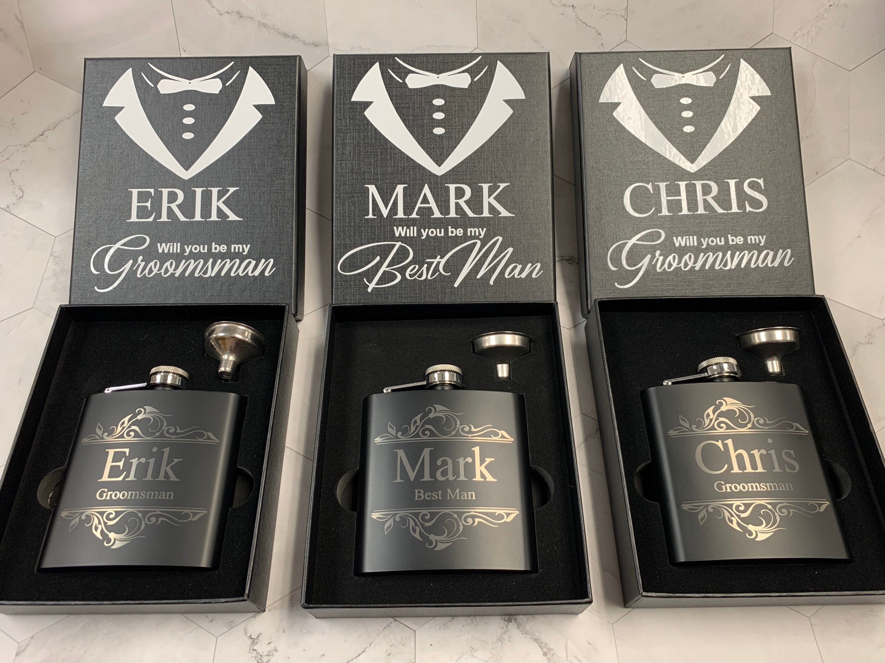 Groomsmen Gift Flask Set Personalized Engraved Box Set Women Best Man Bridesmaid Bachelor Party Proposal Wedding Favors Matte Black