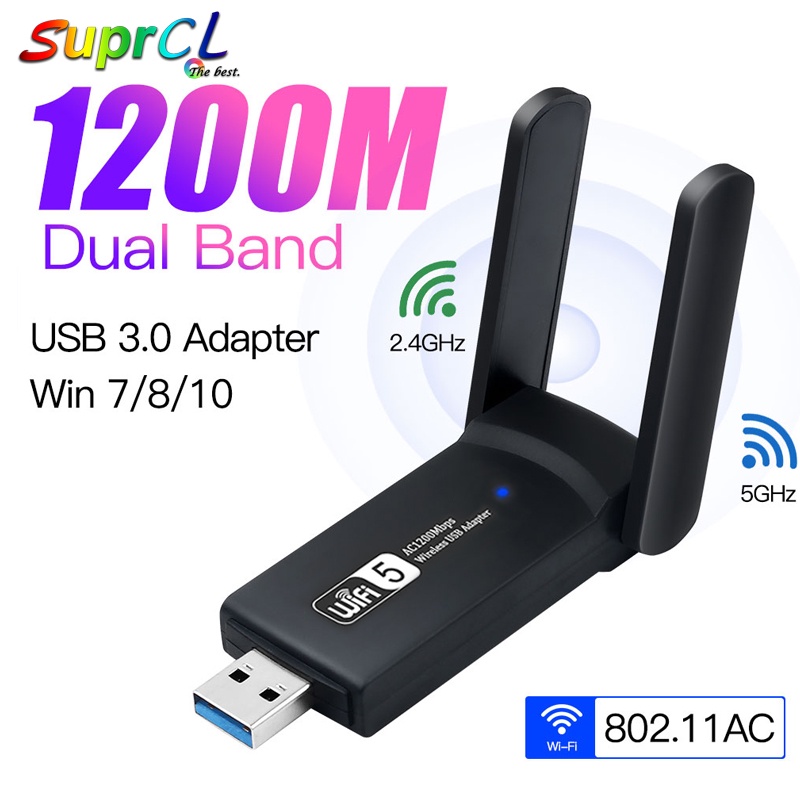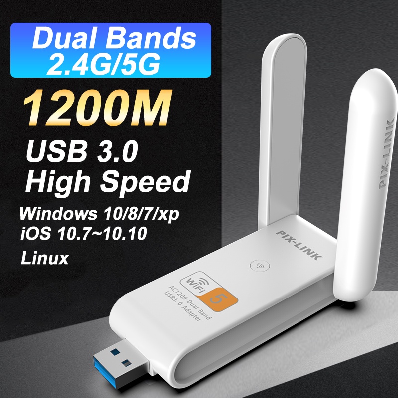 L-Link USB WiFi Adapter for PC: 1200Mbps Dual 5Dbi Antennas 5G/2.4G USB Wireless Network Adapter for Desktop Laptop - WiFi Dongle Supports Windows ...